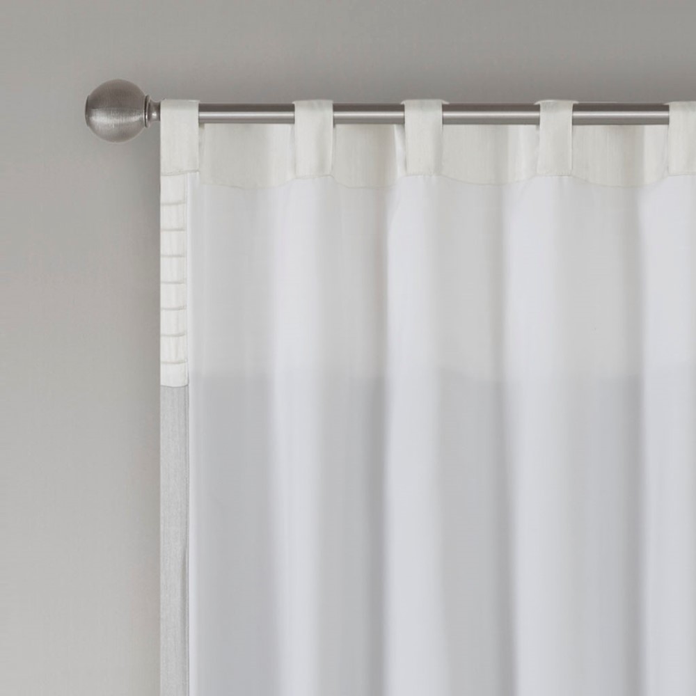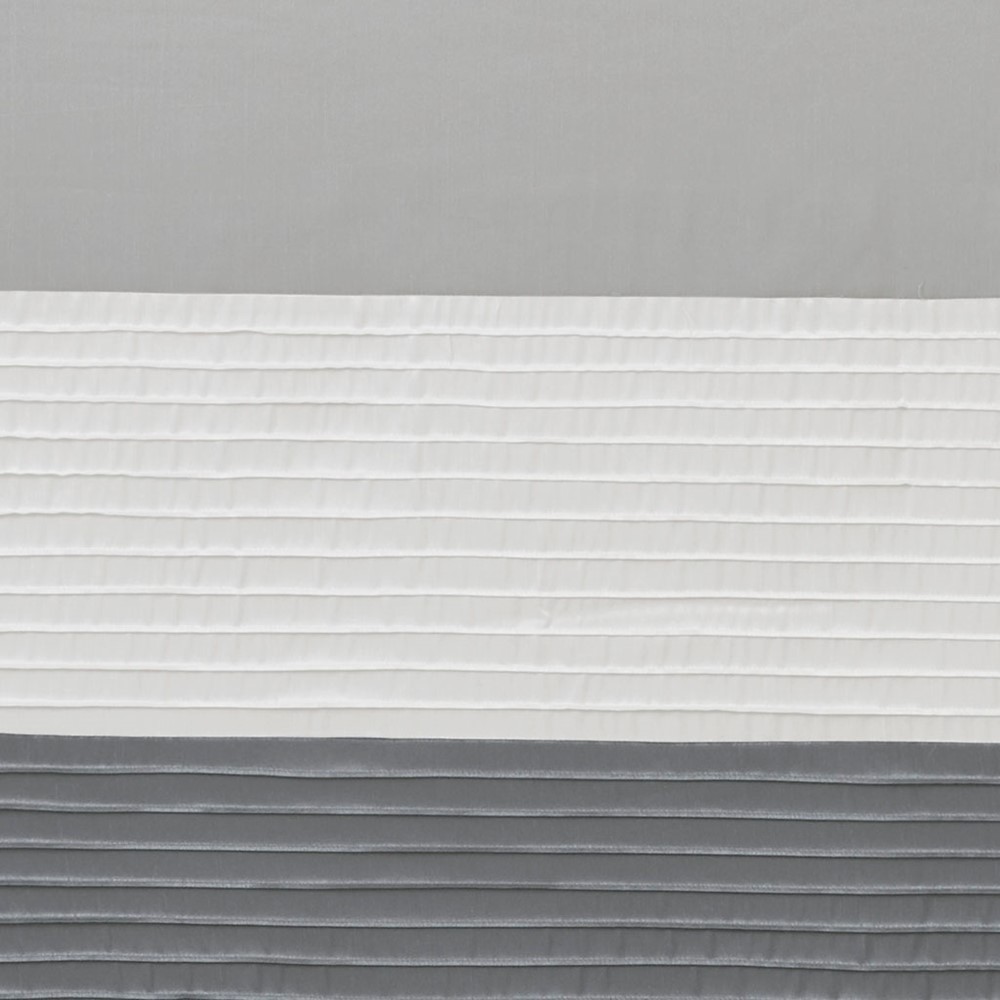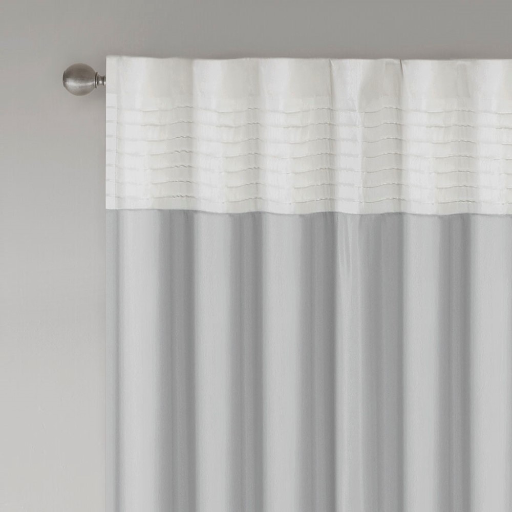 Amherst’s modern color block design is a simple way to add style to your room. This window panel features color block stripes in neutral hues of grey and ivory, combined with pintuck detailing for beautiful texture and dimension. Added lining helps to filter the perfect amount of light and creates a fuller look. Hang using the rod pocket or back tabs for a tailored look. Fits up to 1.25″ diameter rod.