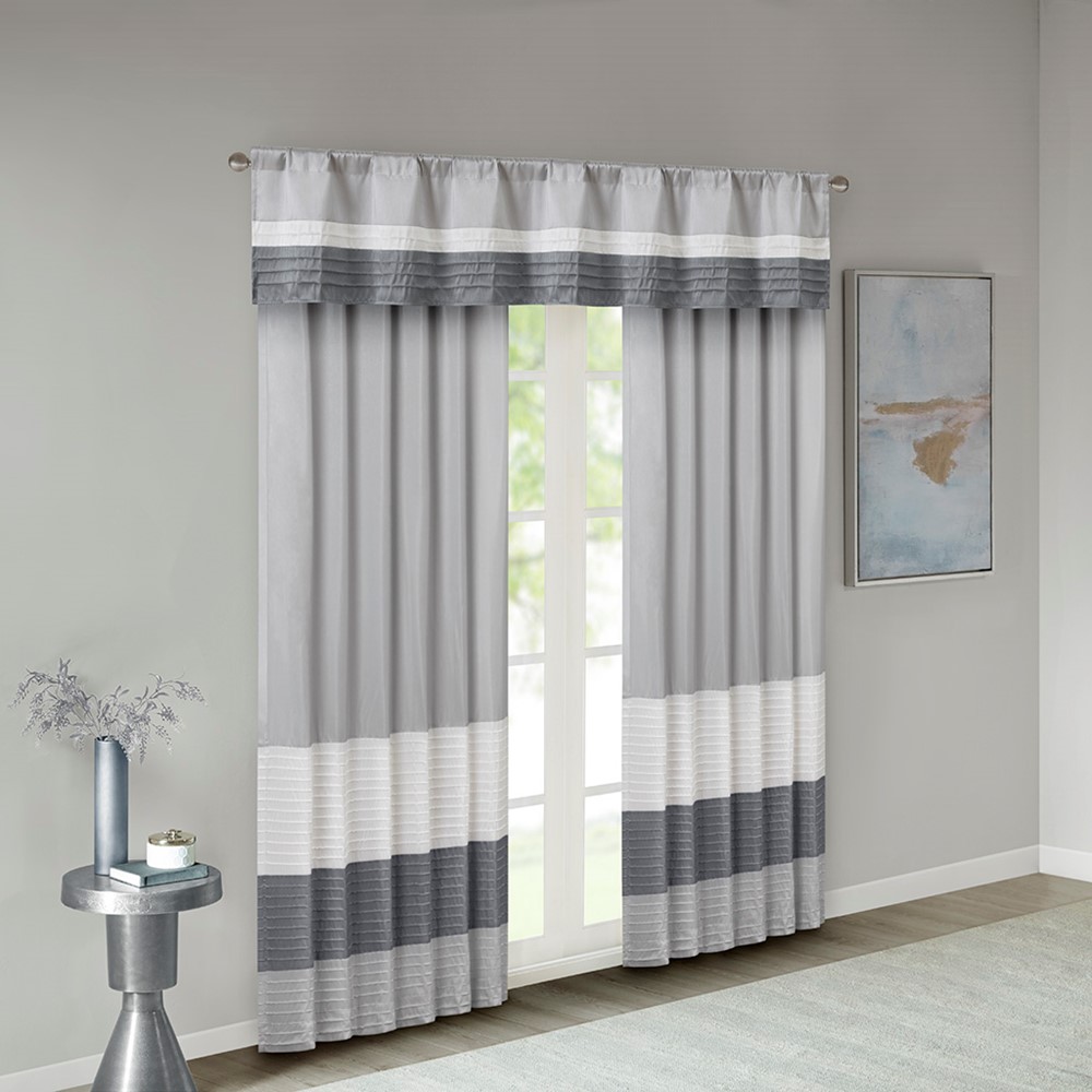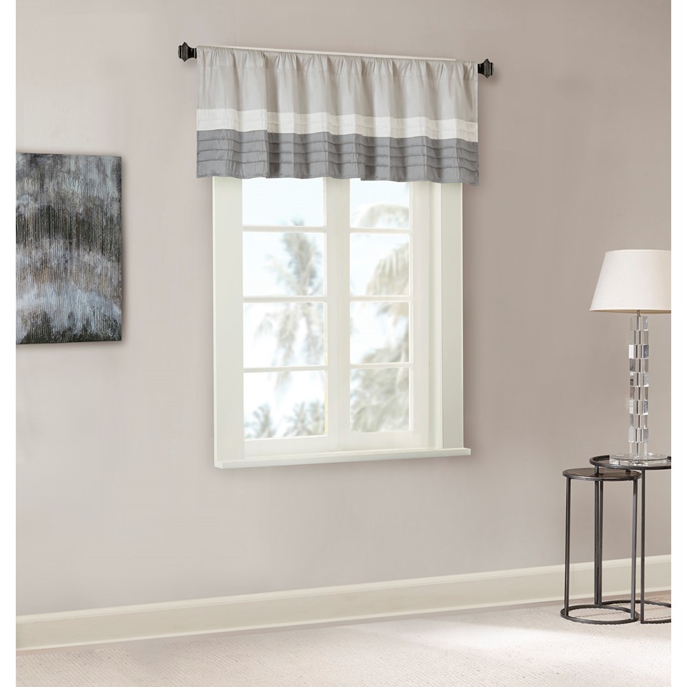 Madison Park Amherst Polyoni Pintuck Window Valance in Grey, 50×18″ MP41-4377