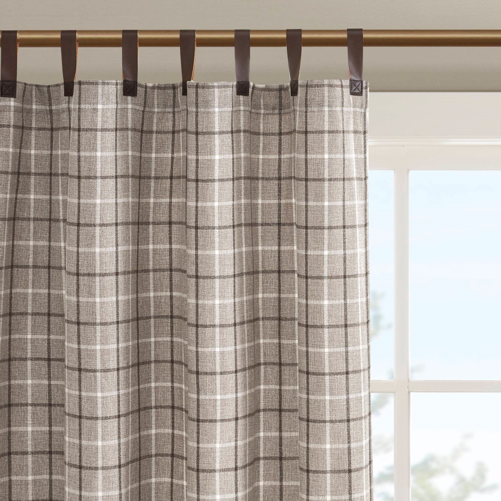 * Plaid Faux Leather Tab Top yarn dyed plaid weave window curtain panels