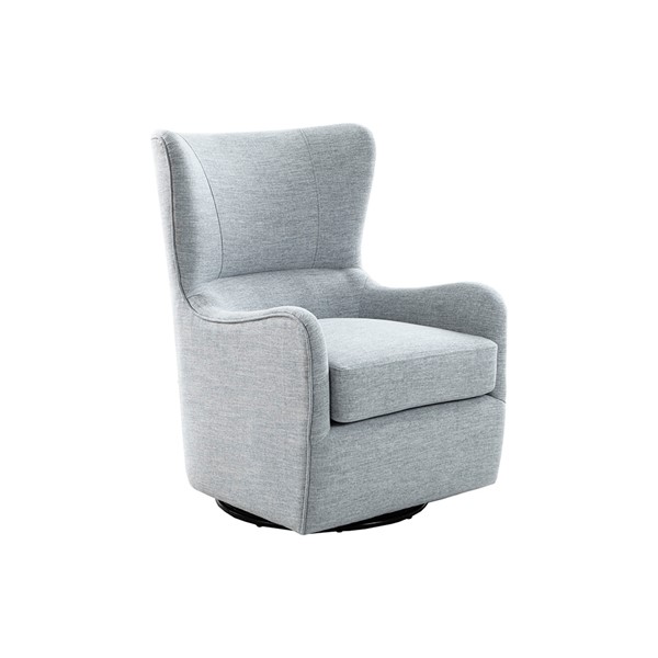 The Madison Park Arianna Swivel Glider Chair offers a simple yet sleek look for your living room decor. This swivel glider chair features a high swoop wing back and removable seat cushion that embodies comfort and a chic style. The light blue upholstery makes it easy to pair this swivel chair with most decors, while a metal swivel base and glider allows the chair to fully rotate 360 degrees. Already fully assembled, this swivel glider chair serves as the perfect addition to complete your living space.