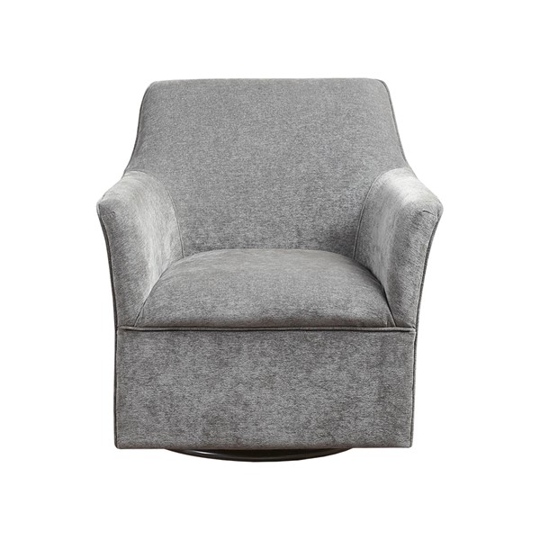 Relax in simple comfort with the Madison Park Augustine Swivel Glider Chair. Featuring a tight back and seat with an attached cushion, this swivel chair is upholstered in a soft and comfy fabric. The flared arms create an elegant look, while the swivel glider enables the chair to smoothly rotate 360 degrees. With a slender design and natural hue, this swivel glider chair is the perfect addition to complete your living room or bedroom decor. No assembly required. Max Capacity: 300 lbs.