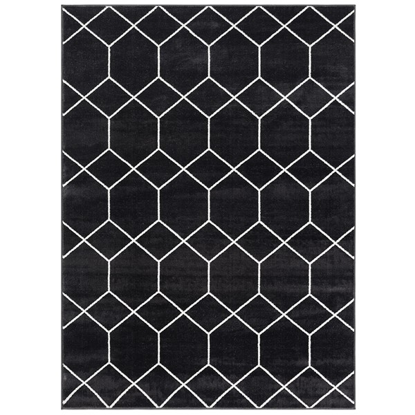 Elevate your home with the modern flair of Madison Park’s Averie Trellis Geometric Black and Cream Woven Area Rug. Made in Turkey, this area rug features a black and cream geometric trellis pattern creating a bold contrasting look. The soft, medium pile makes the woven rug well suited for high traffic areas, while the transparent sprayed latex reverse helps keep the rug from sliding. A rug pad is still highly recommended to keep the rug in place. Stain and fade resistant, this woven area rug is OEKO-TEX certified, meaning it does not contain any harmful substances or chemicals to ensure quality comfort and wellness. Rug is available in multiple sizes, which makes it perfect for your living room, family room, or entryways. To clean, use a vacuum or spot clean.