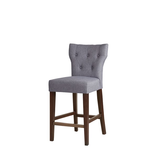 Change up your kitchen decor with the stunning style of the Madison Park Avila Tufted Back Counter Stool. This counter stool features a high button-tufted back upholstered in grey fabric, for a chic transitional look. The dark brown finish on the solid wood legs contrasts the upholstery. A bronze metal kickplate on the front stretcher protects against every-day wear and tear making this counter stool perfect for your dining space. Assembly required.