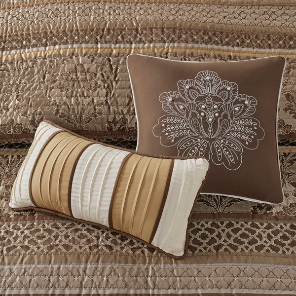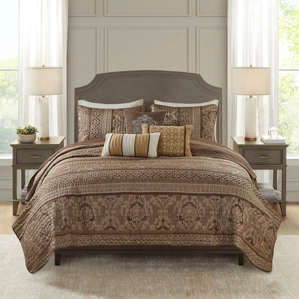 10 reviews for Madison Park Bellagio 6 Piece Jacquard Quilt Set with Throw Pillows in Brown/Gold, King/Cal King MP13-369