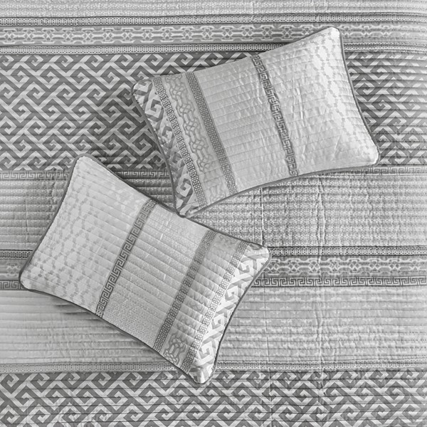 * Luxury and elegant jacquard quilt set in shades of grey and white
