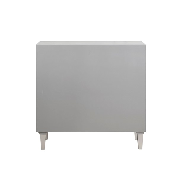 The Madison Park Bering 2 Door Abstract Modern Accent Chest offers an artistic and functional update to your home decor. This accent chest flaunts a silver frame with an abstract design on front of the door panels to create a chic modern look. Each door also features a magnetic catch without a door handle that keeps the doors secure and is easily open by a simple press. Inside the modern accent chest is a single shelf that provides ample storage space for your essential items. Add this painted accent chest to your living room to give your space a contemporary flair. Leg assembly is required and tools are included.