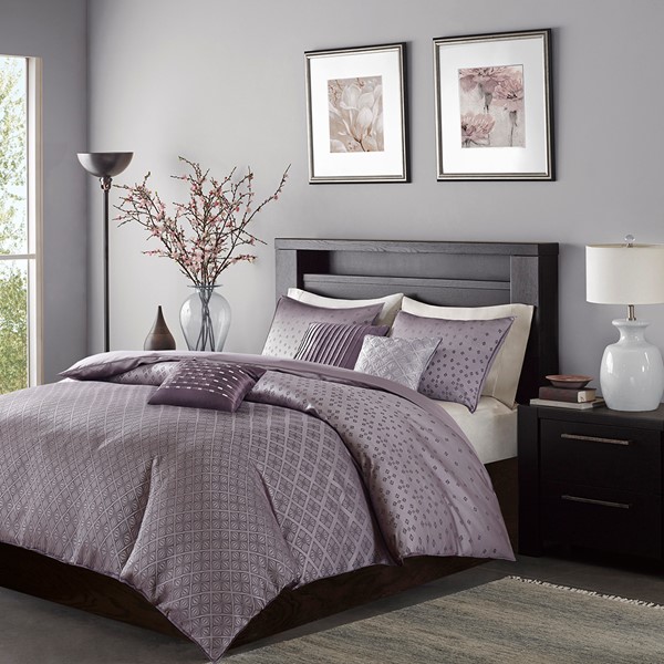 To update your space to a modern look, try the Madison Park Biloxi Collection. Made from polyester jacquard, this unique design is woven to look like sequins. The design has an ombre affect looking heavy in the center of the bed and spreading out towards the top and bottom of the duvet cover. Two matching shams share this ombre design. Three decorative pillows use unique embroidery and fabric manipulation for the perfect new look for your space. Items in the set may come in a rolled or compressed packaging, which will need to be fluffed up or steam ironed before use to remove wrinkles.