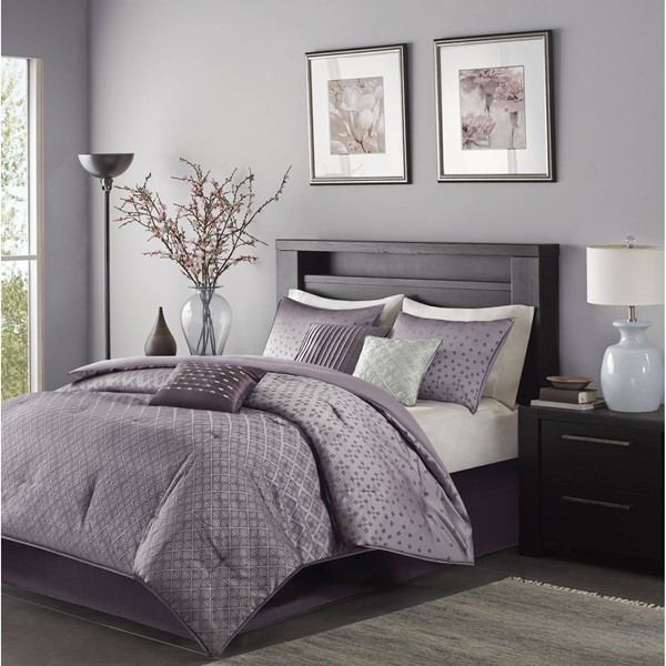 This Madison Park Biloxi 7 Piece Comforter Set in purple for a queen-sized bed exceeded all expectations with its complete set of essentials including a soft comforter, bed skirt, two pillow shams, and three decorative pillows. The top stitching adds a beautiful touch, but may be prone to snagging from pets or nails, and dry cleaning is recommended due to the delicate design.
