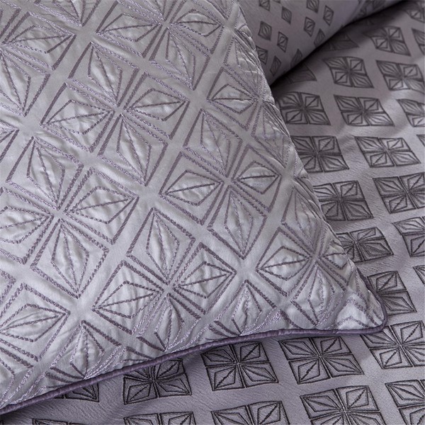 The set is a gorgeous addition to our bed, featuring a lovely purple hue with silver embroidery and a subtle shimmer. My husband and I both appreciate the lack of floral design, and while we haven’t tested its warmth yet due to the summer season, the material feels thick and cozy.