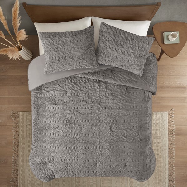 10 reviews for Madison Park Blair Ruched Fur Down Alternative Comforter Set in Grey, King/Cal King MP10-8212