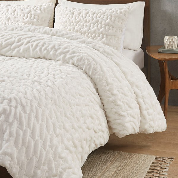 Add glamorous style and comfort to your bedroom with the Madison Park Blair Down Alt Ruched Faux Fur Comforter Set. This stylish comforter will liven up your bedroom with its unique texture and beauty. The face features a luxuriously soft faux fur with a stunning ruched design and a solid microfiber reverse. This bedding set includes 1 hypoallergenic polyester filled comforter and 2 shams to complete the look. This comforter set is also OEKO-TEX certified, meaning it does not contain any harmful substances or chemicals to ensure quality comfort and wellness. All pieces are machine washable for easy care. Items in the set may come in a rolled or compressed packaging, which will need to be fluffed up or steam ironed before use to remove wrinkles.