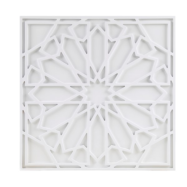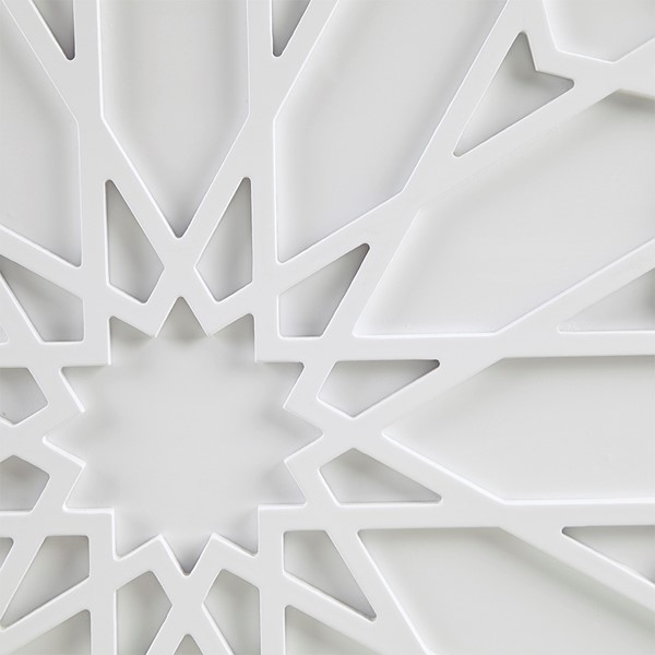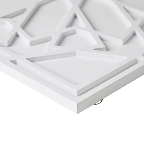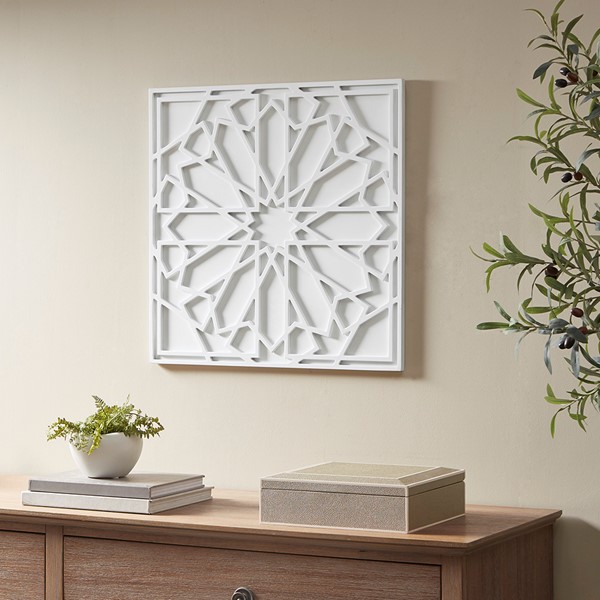 * Dimensional wall art with a geometric medallion design in a satin white finish on engineered wood