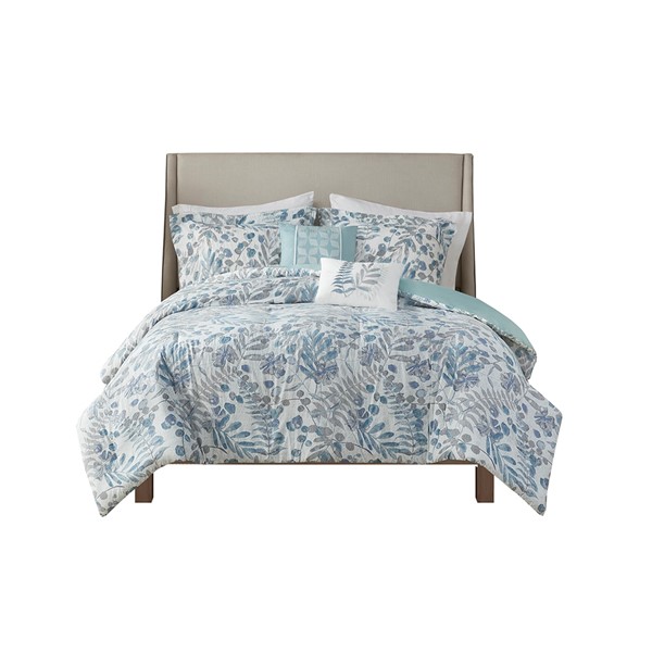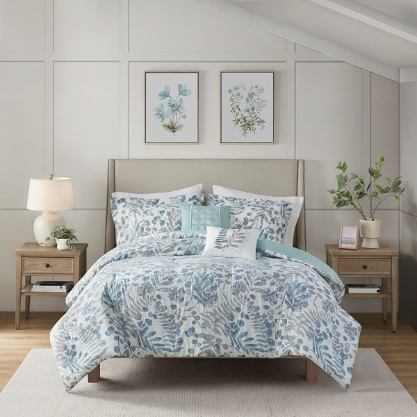 Featuring an all over leafy, floral, botanical print, this seersucker microfiber duvet cover set exudes a modern farmhouse style that adds a touch of elegance to any bedroom. The two decorative pillows feature gorgeous embroidery that complements the bedding print, adding to the overall charm of the set. Colors featured in this set include various blue, violet, mauve, and whites. Our duvet covers come with button closures and 4 inner ties to help keep your duvet insert secured (inserts sold separately). The pillows are filled with hypoallergenic polyester filling that is treated to be dustproof, ensuring a restful and comfortable sleeping experience. This OEKO-Tex certified bedding set can also be machine washed and is extra durable for long lasting comfort