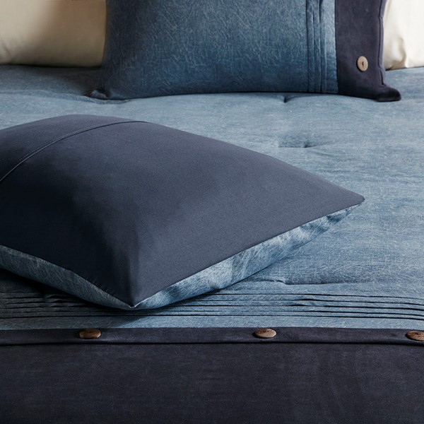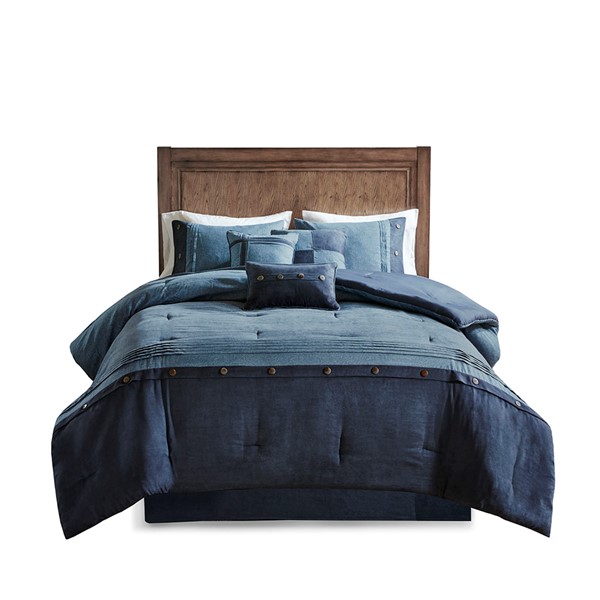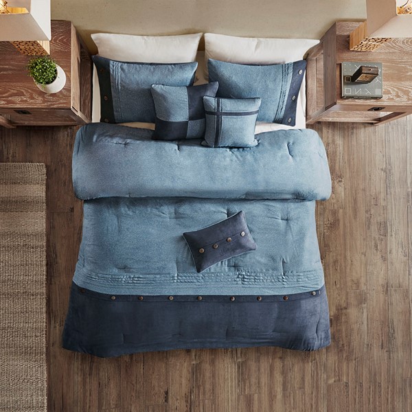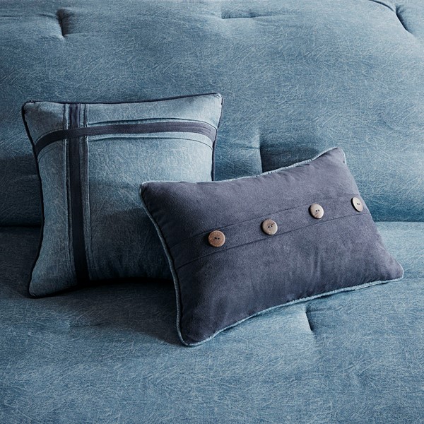 For a warm, lodge look in your space, the Madison Park Boone Collection is perfect for you. The unique fabric used in this set has a textured earthy print pieced with polyester microsuede at the bottom and buttons for a personal touch. Three decorative pillows using piecing and embroidery of both top of bed fabrics completing this cohesive look. Machine washable for easy care, this comforter set brings a refresh update to your bedroom decor. Items in the set may come in a rolled or compressed packaging, which will need to be fluffed up or steam ironed before use to remove wrinkles.