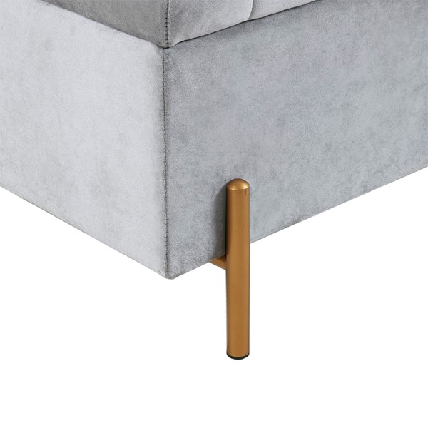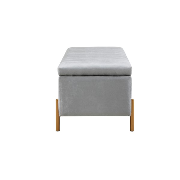 Madison Park Boyden Upholstered Soft Close Storage Bench with Gold Metal Legs in Gray MP105-1140