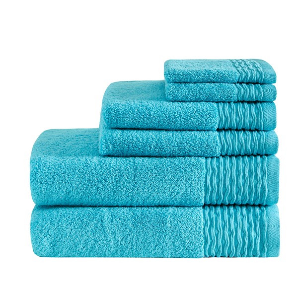 * Durable jacquard wavy border 6-piece zero twist 100% cotton towel set