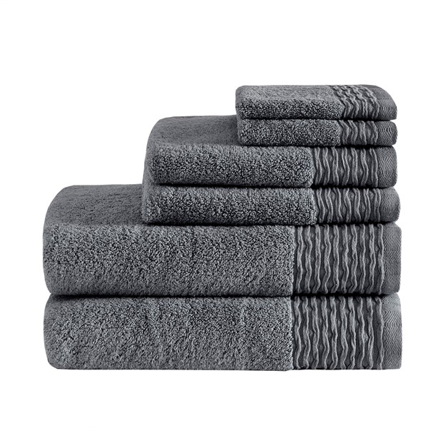 * Durable jacquard wavy border 6-piece zero twist 100% cotton towel set