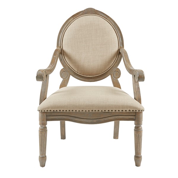 Discover sophistication in a modernized update to this traditional, yet classic design of this Brentwood chair. The wonderful mix of a linen look combined with a reclaimed natural finish and pops of nail head give this chair definite modernized appeal. Assembly required.