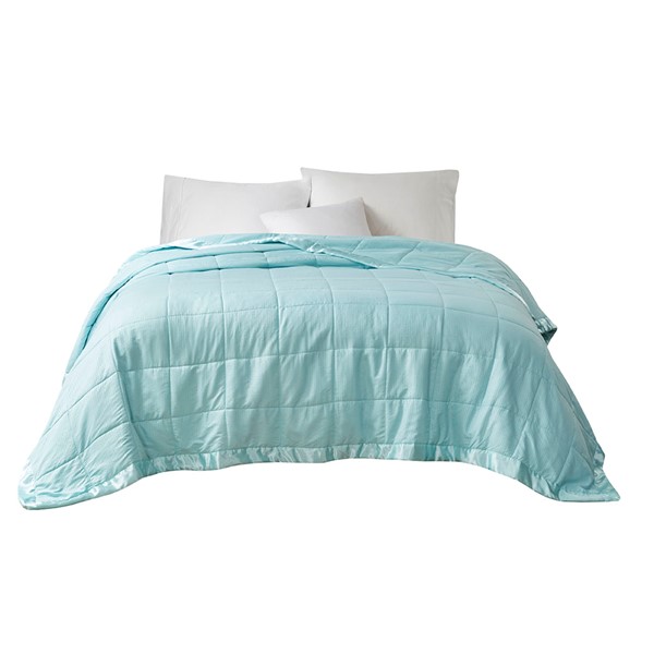 Madison Park Cambria Oversized Down Alternative Blanket with Satin Trim in Aqua, King MP51-2609
