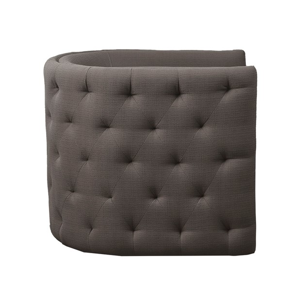 * Elegant low-back barrel chair with button tufting on the outer back and sides and a smooth interior for a clean, comfortable feel