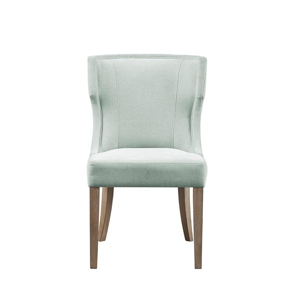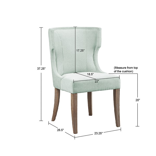 Define your dining room with the elegance of the Madison Park Carson dining chair. This upholstered dining chair features a wingback style back with piping details around the frame that create clean lines and curves, for a sophisticated silhouette. Solid wood legs, in a smooth distressed grey finish, complement the beautiful upholstery to complete the transitional, yet contemporary look. Assembly is required and tools are included.
