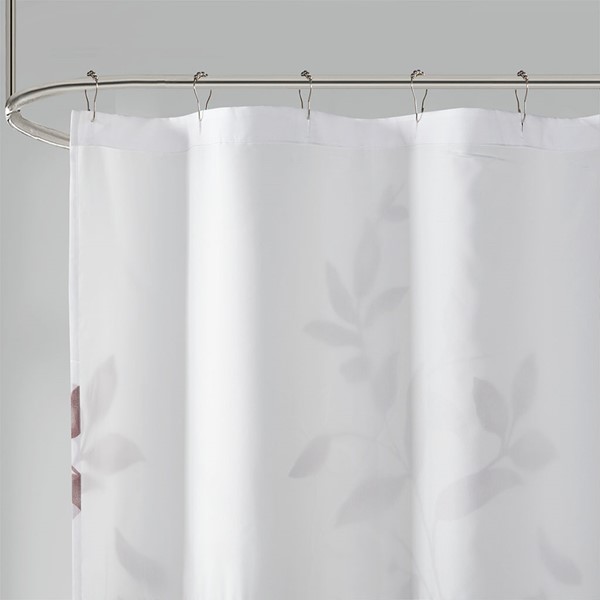 Transform your bathroom with the beauty of Madison Park’s Cecily Printed Shower Curtain. The gorgeous shower curtain flaunts a stunning allover mauve botanical design with burnout detailing for beautiful contrast and dimension. Non-absorbent water coat will help to bead water on fabric and glide down which provides quick dry and keeps fabric looking tidy, separate liner is still recommended and can be purchased seperately. Machine washable for easy care; Each shower curtain measure 72″x72″ and is finished with 12 button holes at the top making it easy to hang; hooks and rod are not included and will need to be purchased separately. Complete the look with coordinating Window panel, available and sold separately.