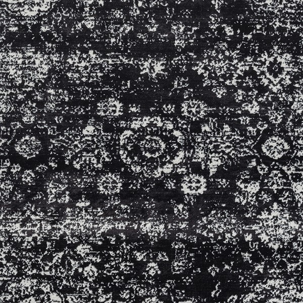 * Persian inspired rug with distressed vintage look in contrasting of shades of black and cream