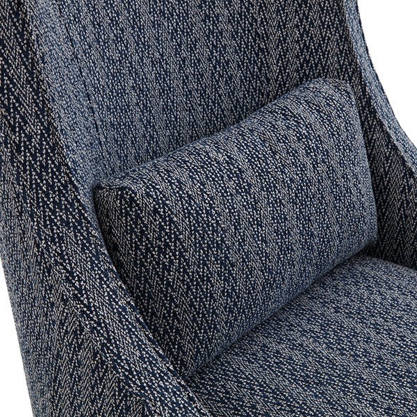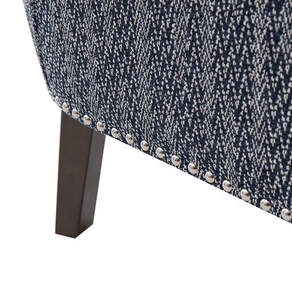 Update Your Living Room Decor With The Madison Park Chase Accent Chair. Flaunting A High Back And Recessed Arms, This Accent Chair Displays A Sleek And Beautiful Silhouette That Elevates Your Space. The Navy Upholstery Features A Chevron Jacquard Pattern For Texture And Dimension, While A Silver Nailhead Trim Around The Base Provides An Elegant Touch. A Dark Moroccan Wood Finish On The Solid Wood Legs Complements The Upholstery To Complete The Transitional Look. With An Included Accent Kidney Pillow, This Accent Chair Brings A Stunning Update To Your Home Decor.Leg assembly is required, tool included.