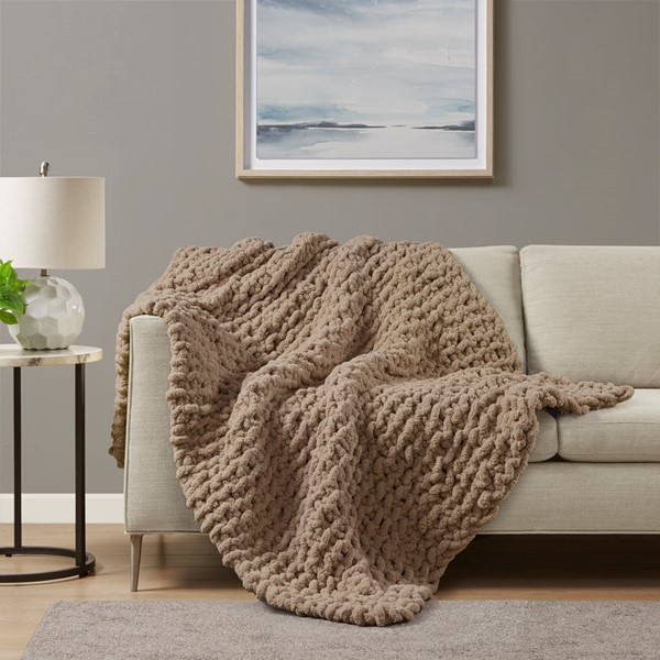 Madison Park Chenille Chunky Knit Throw in Brown, 50×60″ MP50-8236