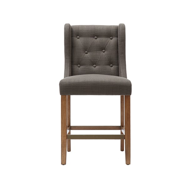 This beautiful button-tufted counter stool is upholstered in a beautiful woven fabric that coordinate perfectly with several different decor styles. Assembly required.