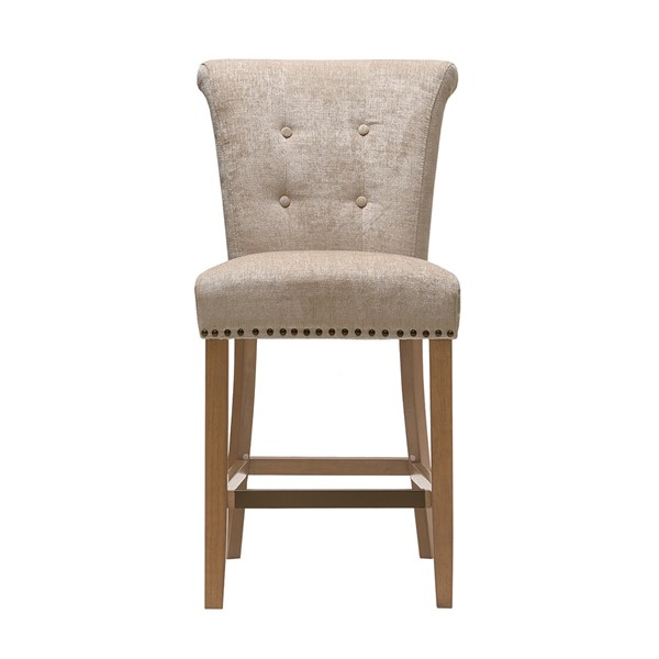 Elegant bronze nail heads add an extra touch of dignified style to this roll back button tufted counter stool. Assembly required.