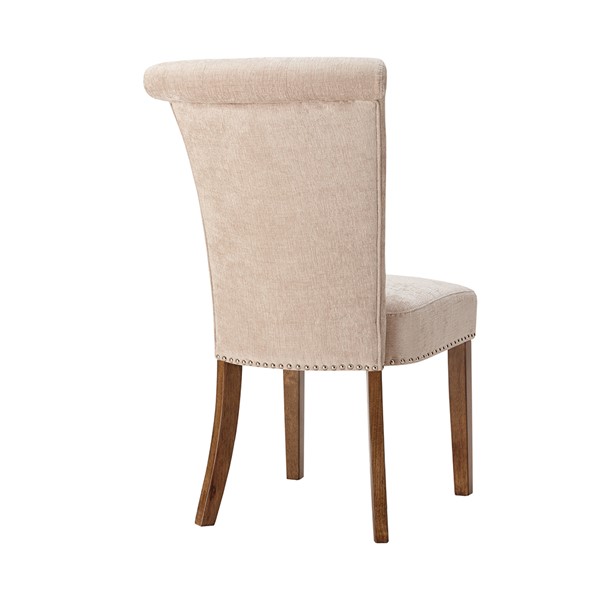 Elegant silver nail heads add an extra touch of dignified style to this roll back button tufted armless dining chair. Assembly required.