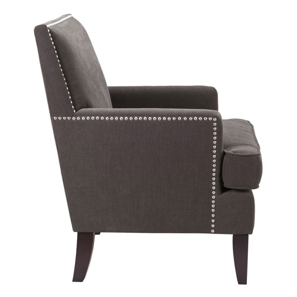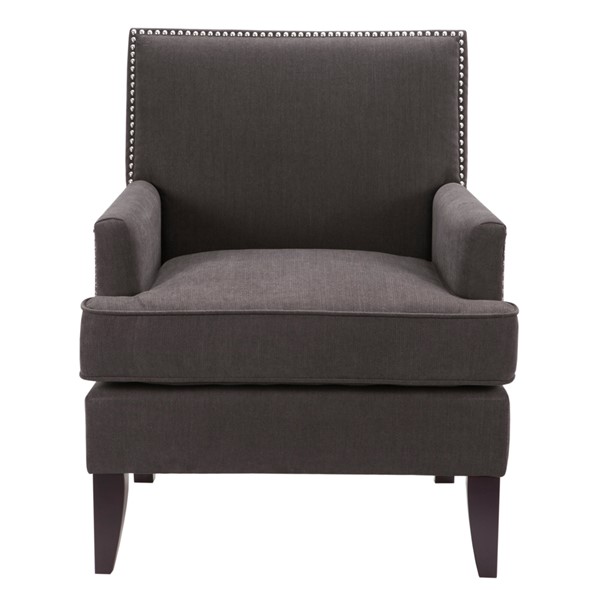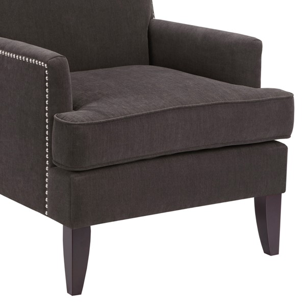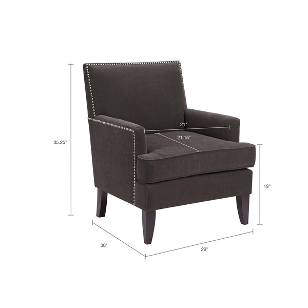 The Madison Park Colton Track Arm Club Chair brings a simple and sharp update to your home decor. This accent club chair features a sleek design with track arms and a nailhead trim along the back and sides, adding an elegant touch to the contemporary look. The exposed, solid wood legs provide a sophisticated complement to the upholstery to give this accent chair a stylish allure. A removable high density foam cushion completes the design and offers exceptional comfort to any room in your home. Leg assembly is required.