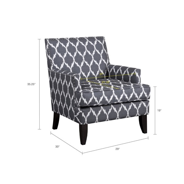 The Madison Park Colton Track Arm Club Chair brings a simple and sharp update to your home decor. This accent club chair features a sleek design with track arms and a nailhead trim along the back and sides, adding an elegant touch to the contemporary look. The exposed, solid wood legs provide a sophisticated complement to the upholstery to give this accent chair a stylish allure. A removable high density foam cushion completes the design and offers exceptional comfort to any room in your home. Leg assembly is required.