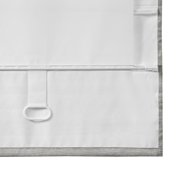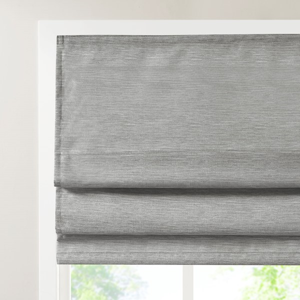 Our Madison Park Como Printed Faux Silk Room Darkening Cordless Roman Shade offers a modern and convenient update to your home decor. This roman shade flaunts a tonal grey faux silk textured fabric to create a stylish and beautiful, look and feel. Also achieving the OEKO-TEX certification, these curtains do not contain any harmful substances or chemicals ensuring quality comfort and wellness. A thermal foambacking on the reverse provides energy efficiency and a room darkening effect, for enhanced privacy. The cordless retraction mechanism makes the room darkening shade easy to open and close the throughout the day, while the detachable fabric face allows for easier assembly and cleaning by lightly shaking or dusting. Please note: The top face fabric is detachable from the hook and loop fastener, but is NOT fully removable. Ready to install right out of the packaging, this roman shade can be hung inside or above the window pane allowing you to find the perfect fit for your home decor. Shade measures 64-inches long and comes in 5 width options to suit multiple standard window sizes. Each roman shade is sold as a single and comes with a printed instructional guide as well as an instructional video available on site. Assembly is required.