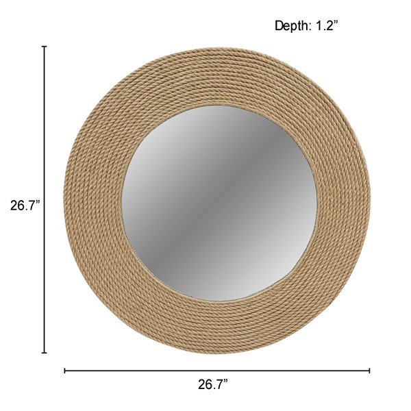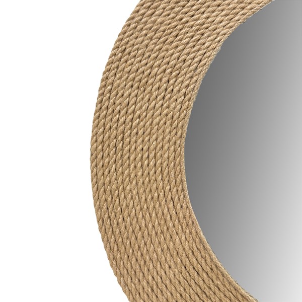 Add a relaxed touch of style to any room with our Madison Park Cove Natural Jute Rope Round Wall Mirror 26″. This round mirror showcases a layered natural jute rope construction that circles seamlessly around a mirrored center, creating a simple and updated coastal look. Made from lightweight materials – this rope mirror adds a rich textural element to any room, while 2 D-rings on the reverse allows for easy and effortless hanging.