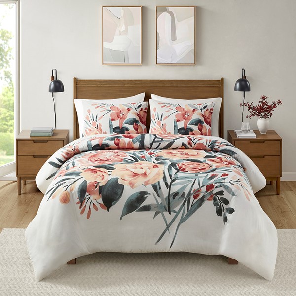 10 reviews for Madison Park Dahlia 3 Piece Floral Cotton Duvet Cover Set in Peach/Off-White, Full/Queen MP12-8357