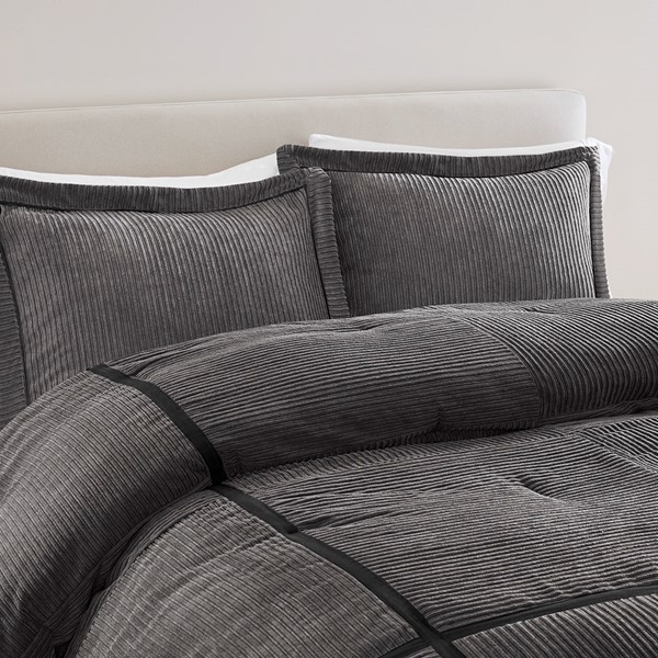 ?Luxurious design?Experience the ultimate in comfort and elegance with the Madison Park Dallas 7 Piece Micro Corduroy Comforter Set. Crafted from 100% polyester micro corduroy fabric, this set features pieced color blocks with taping, adding a sophisticated touch to your bedroom decor.