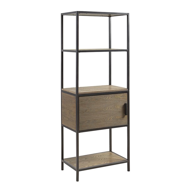 Display your books or curios in your living room or home office with the Madison Park Darley Bookcase. Able to easily fit into smaller spaces, this bookshelf features 3 solid wood veneer shelves that offer plenty of room for your decorative objects. A lower storage cabinet with a metal handle provides another place to store books and trinkets. Made with a sturdy metal frame, this storage bookcase brings additional storage and charming transitional style to your home decor. Assembly is required and tools are included.