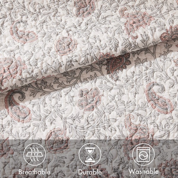 2 reviews for Madison Park Dawn 6 Piece Cotton Percale Quilt Set with Throw Pillows in Blush, Full/Queen MP13-6872