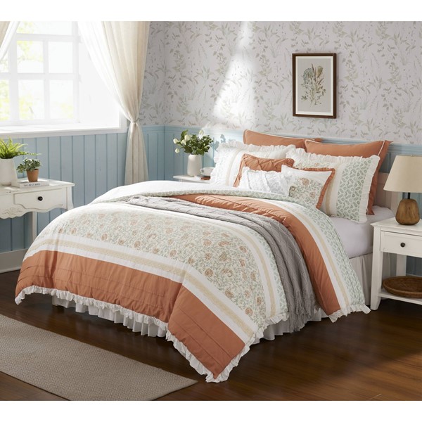 * Cottage and shabby chic 9 piece comforter set in cotton fabrication