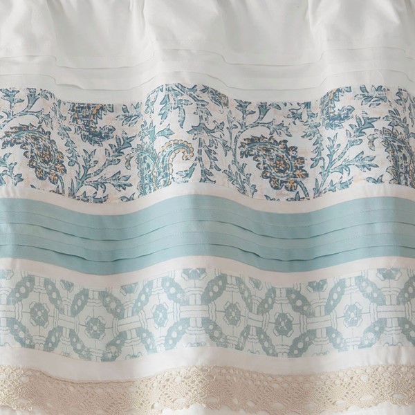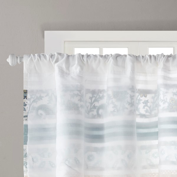 Shabby chic in all the right ways, our Madison Park Dawn valance is the perfect update for any room. The paisley print and delicate pieced design showcases a soft color palette of aqua, periwinkle, and white hues, finished with a lace trim for additional charm and texture. The window valance is also OEKO-TEX certified, meaning it does not contain any harmful substances or chemicals, ensuring quality comfort and wellness. Made from 100% cotton for natural appeal, this valance features a rod pocket that fits up to 1.25″ diameter rod. Complete the look with coordinating kitchen tiers or perfect on its own for small windows or layering. Complete the set with coordinate kitchen tier, bedding and shower curtain available and sold separately.
