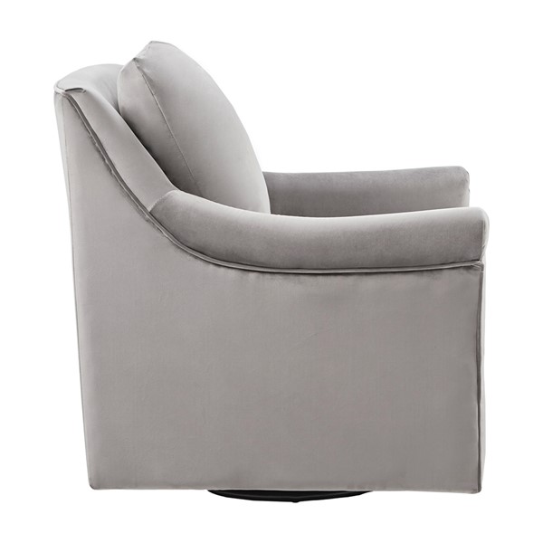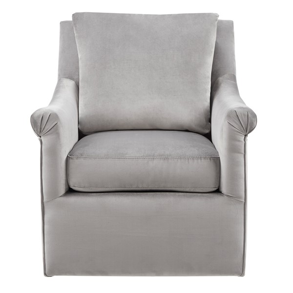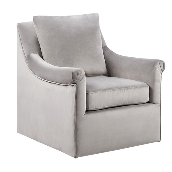 The curved arms and straight back of the Madison Park Deanna Swivel Chair adds a touch of glamour to any space. A high-density foam filling and solid wood frame provide exceptional comfort and support, while the swivel feature allows the lounge chair to rotate 360 degrees on its base. This upholstered swivel chair will make an eye-catching piece in your home. No assembly required.