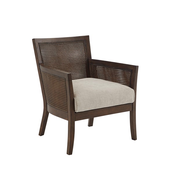 Relax in the comfort and simple style of the Madison Park Diedra Cane Armchair. The unique cane back and sides feature an espresso wood finish, for a charming farmhouse look. The loose seat is upholstered in a tan-hued fabric and uses high-density foam filling, for long-lasting comfort and exceptional support. Add this accent chair to your living room or home office for a chic update to your space. Assembly required, tools included.