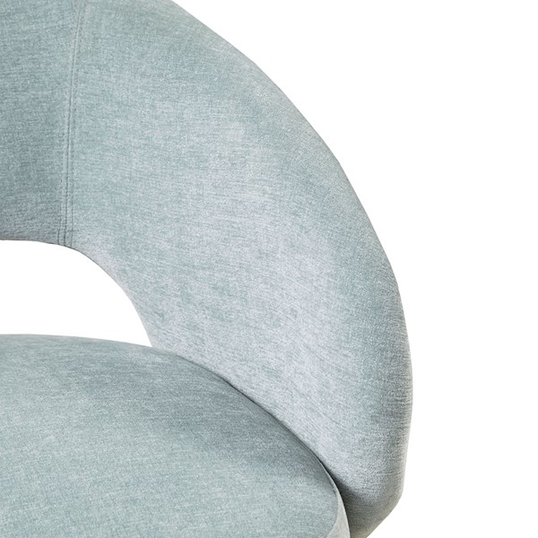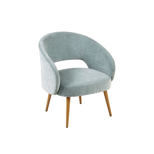 Create the perfect modern sitting space using Madison Park’s Dinah Open Back Accent Chair with Antique Gold Metallic Legs. This contemporary accent chair is upholstered in a soft fabric that blends greyish blue and green hues, creating a chic modern look. The curved open back and seat give the chair a more contemporary silhouette, while the straight metal legs complement the upholstery with an antique gold finish that adds a mid-century flair to the design. Flaunting clean lines and elegant curves, this open back accent chair offers a fashionable update to your living room. Leg assembly is required.