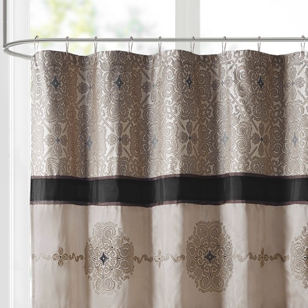 Madison Park Donovan Embroidered Shower Curtain in Black, 72×72″ MP70-8302