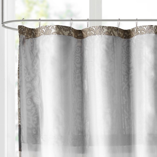 * Elegant and luxurious jacquard design shower curtain pieced in polyoni and embroidery treatment