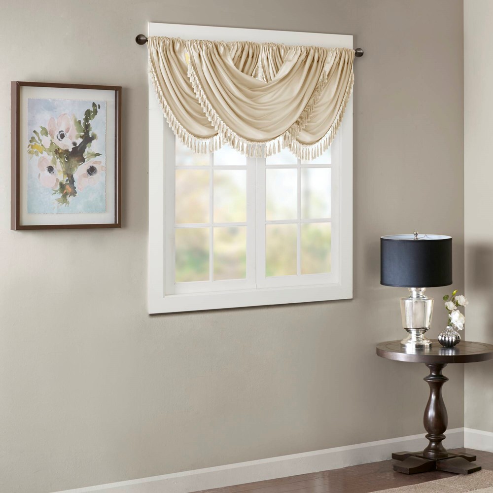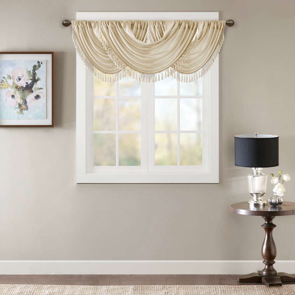 Madison Park Elena Faux Silk Waterfall Embellished Valance in Champagne, 38×46″ MP41-4952