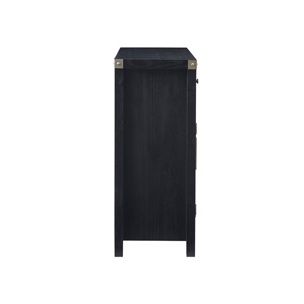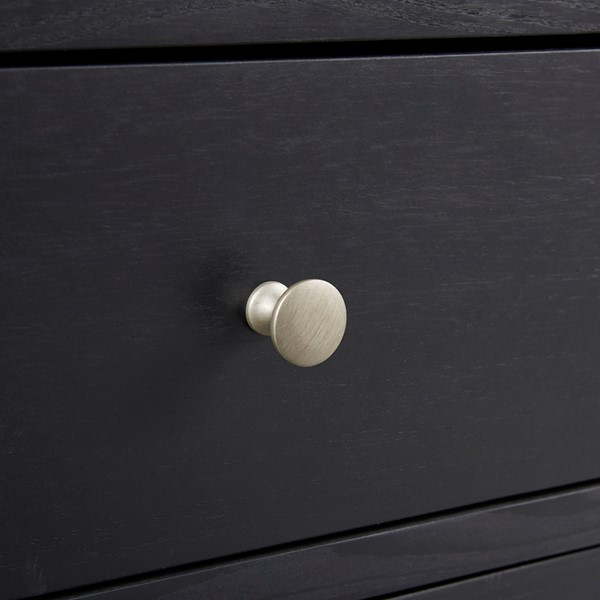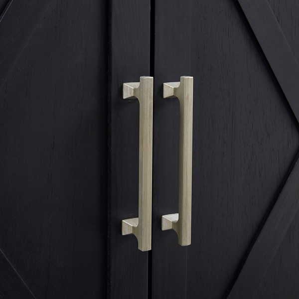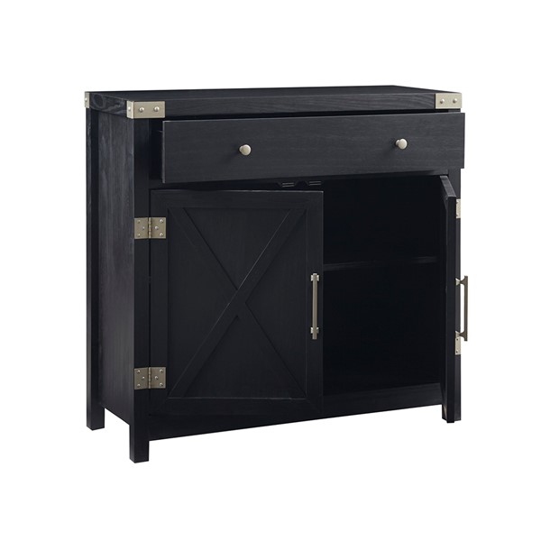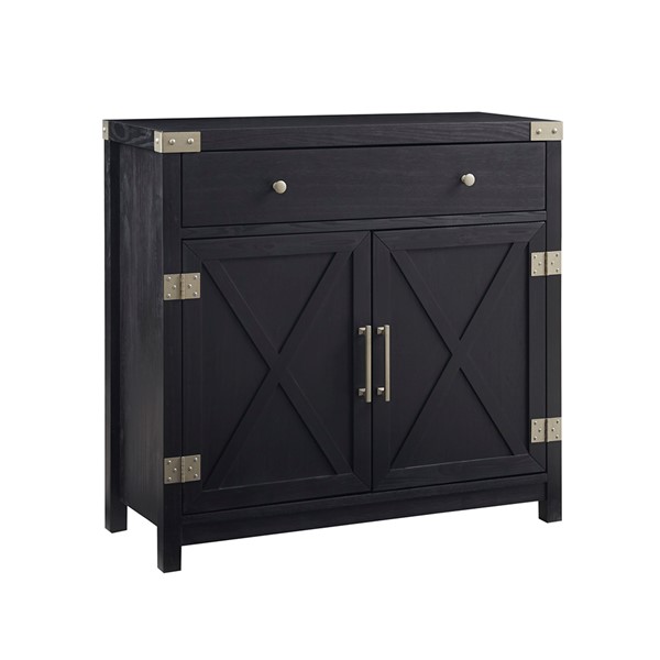 Add style and extra storage to your home with the Madison Park Ellie Accent Chest. This 2-door accent chest features an X-shaped design on each door with a large front drawer that offers ample storage space and versatility, for your space. Magnetic door catches help keep the doors secure and the removable shelf inside helps to accommodate larger household items. The exposed hardware flaunts a brushed steel patina finish that creates a striking contrast against the black wood finish to enhance the transitional design. Assembly is required.