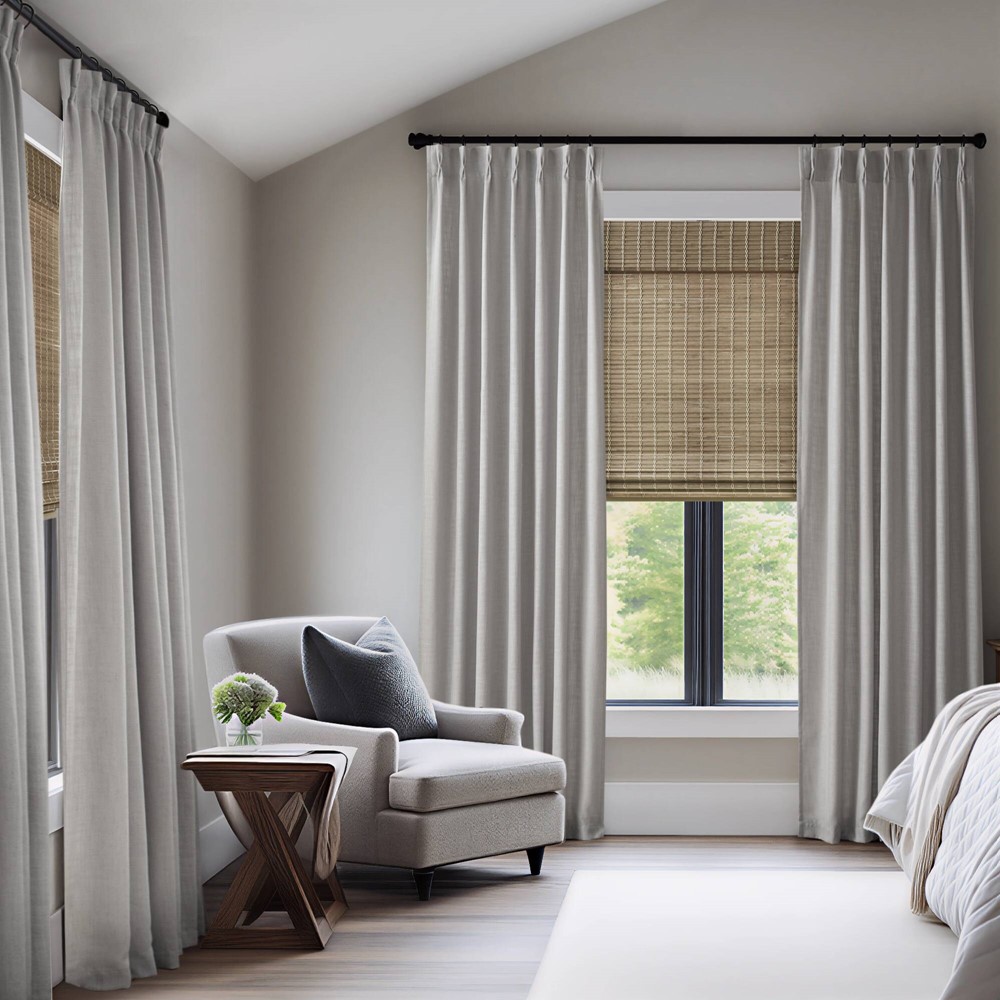 Bring timeless sophistication to your space with these premium curtain panels. Each pair is woven from a heavyweight poly-linen blend, offering a soft, natural texture and lasting durability. The elegant pinched pleat design adds structure and a tailored finish, making them perfect for both modern and classic interiors. These curtain panels gently filter sunlight, providing soft illumination and subtle privacy without completely blocking your view. Each pair includes 16 hooks and iron rings, with 2 spare parts, ensuring easy installation and lasting use. Perfect for living rooms, bedrooms, or dining areas, they create a light, airy atmosphere while adding an elevated touch of luxury.